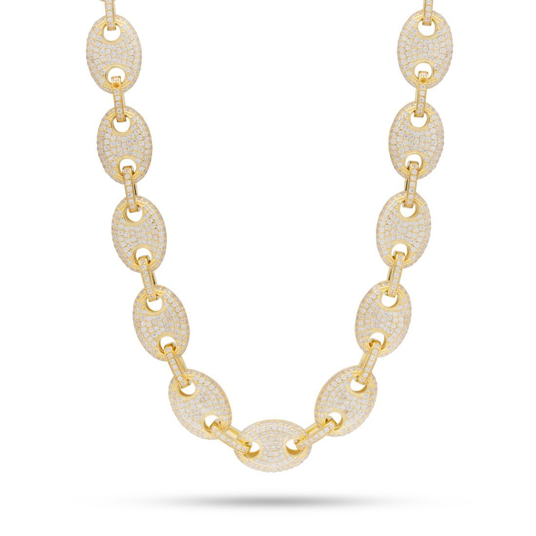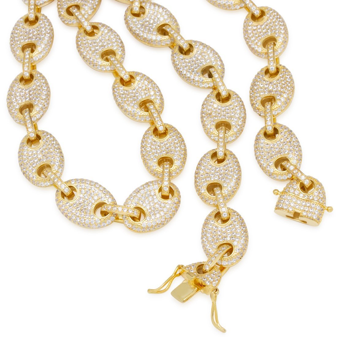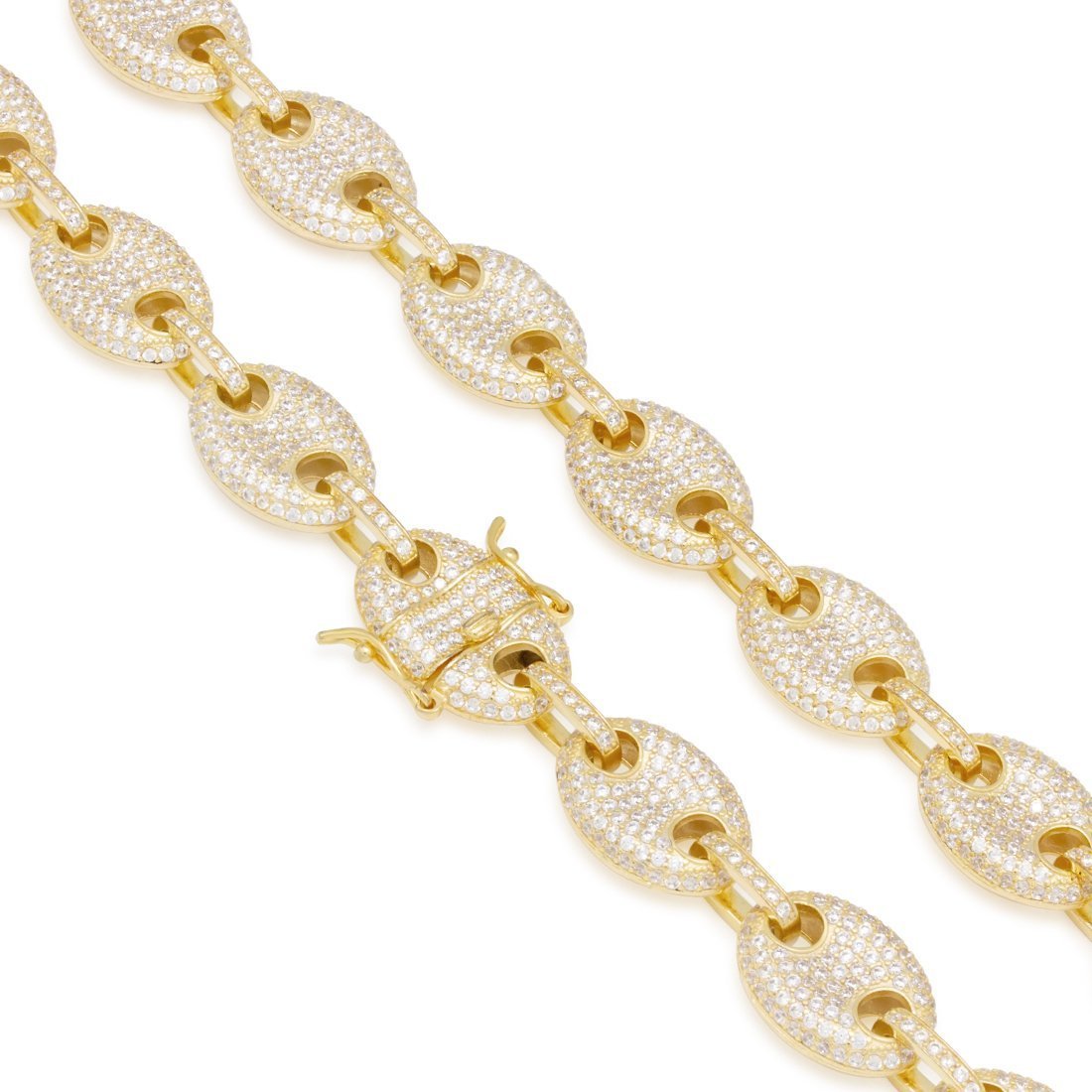 Inspired by a famous design, the Iced G-link chain features high quality 14K gold plating and VVS Diamond Simulate Stones that radiate under sunlight. The Iced G-link Chain comes in different lengths that best fits your preference.