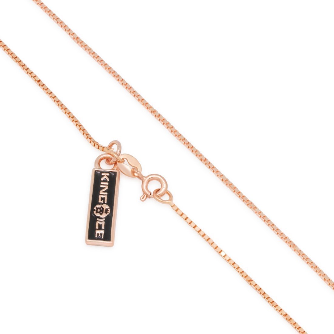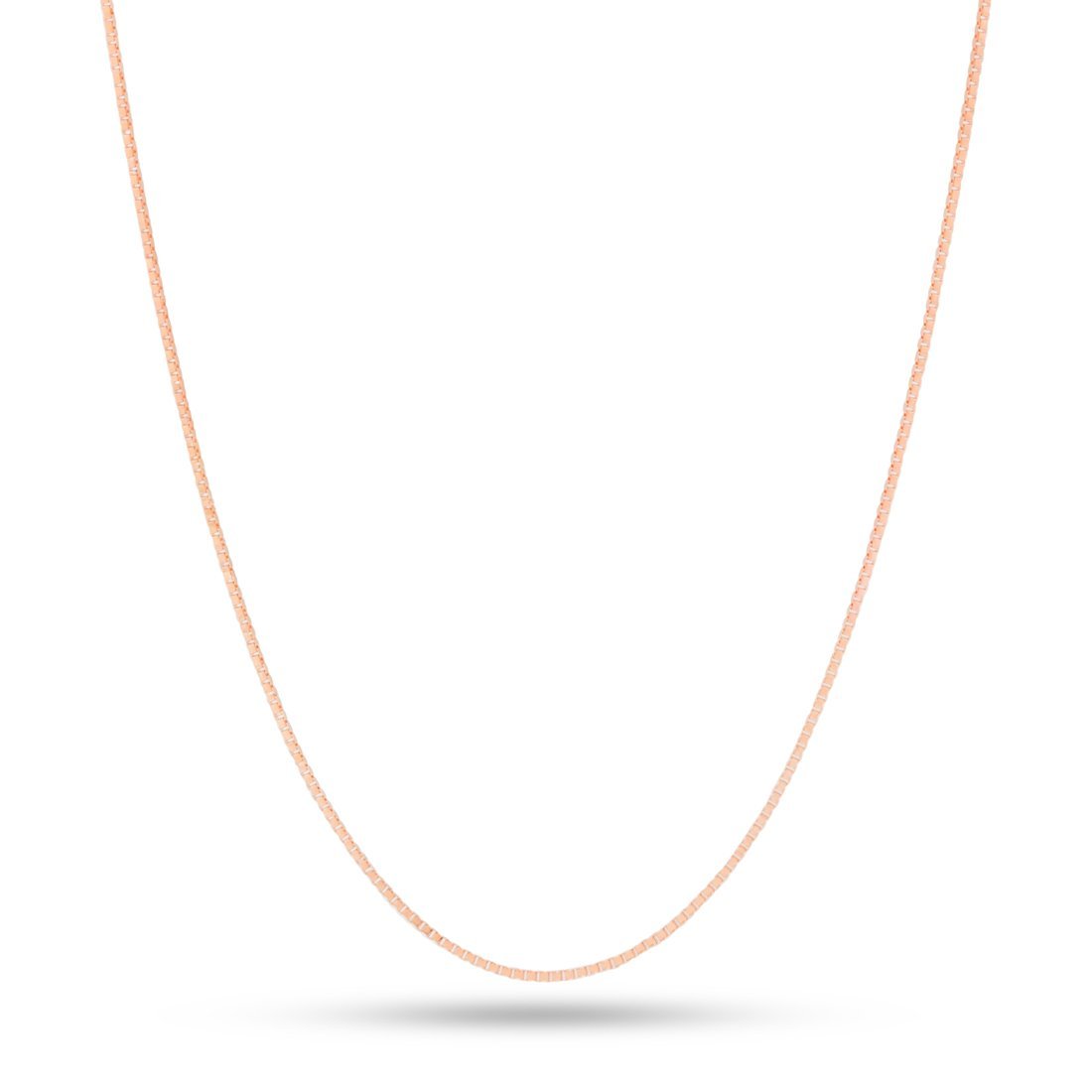 Simple yet delicate, the .925 Sterling Silver Rose Gold 1mm Box Chain features a high polish rose gold plating. Each  chain comes with a lobster claw clasp for a secure wear.